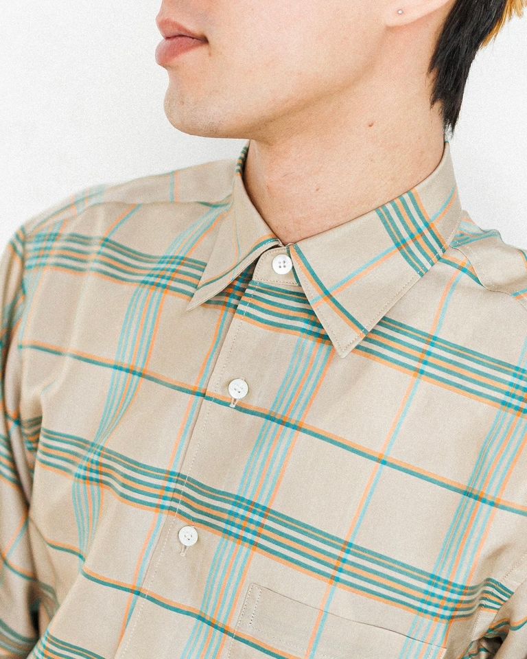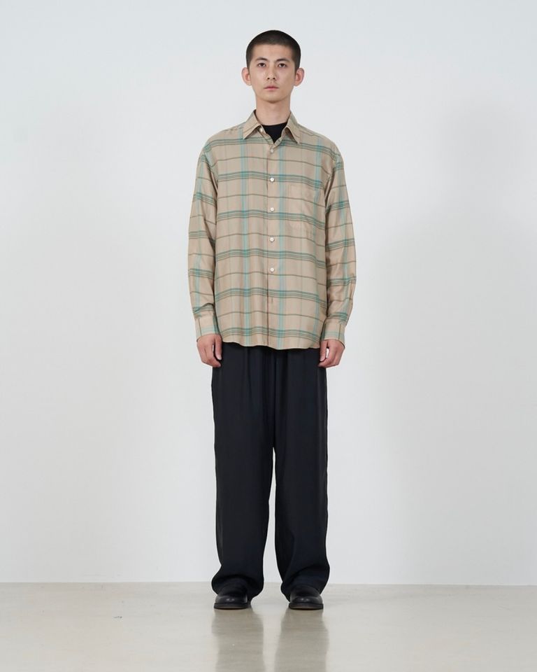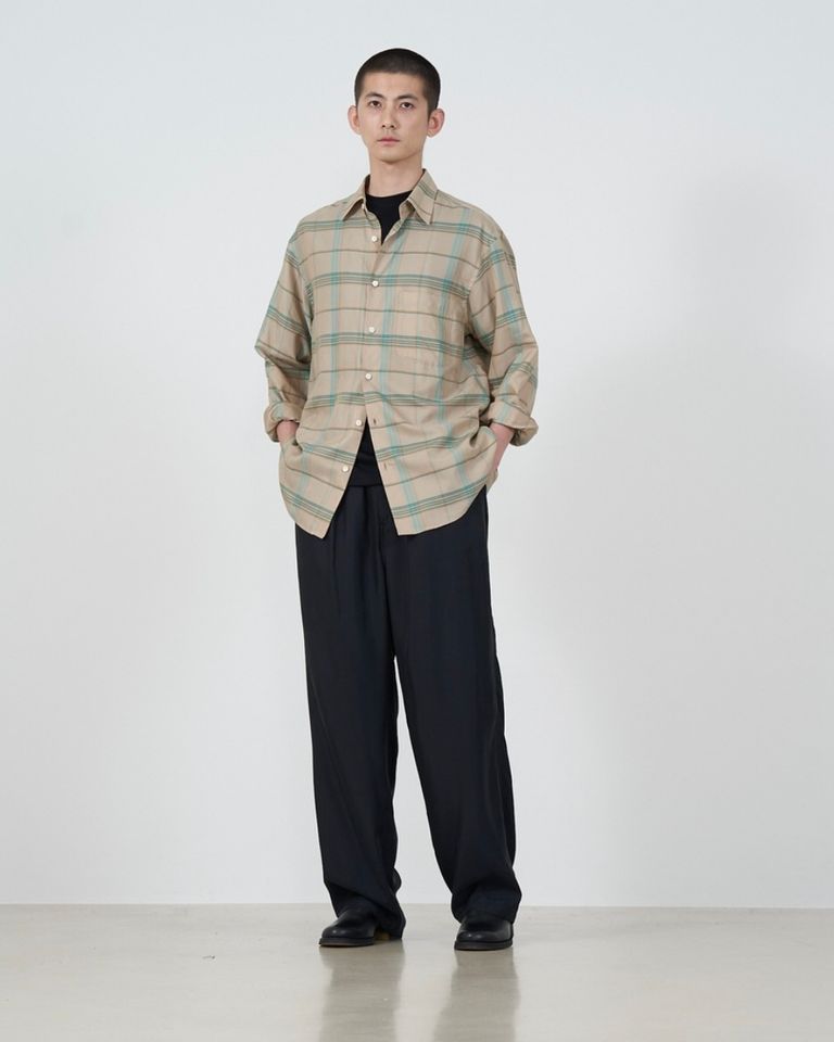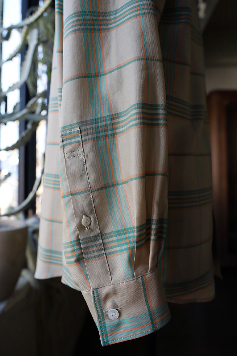 ポイント10% 在庫なし YOKE ヨーク25SS シャツPLAID REGULAR COLLAR SHIRT(YK25SS0944SH)BEIGE ¥40,700 税込 3,700 ポイント還元 この商品は 送料無料 でお届けします(※一部例外となる地域がございます 詳細) 注文 サイズ(採寸)情報 質問する お気に入り 電話対応 11:00-17:30 サイズ 肩幅 袖丈 身幅 着丈 衿回り 2 47 60 56 76 38 単位:cm 商品説明 YOKEより、新作PLAID REGULAR COLLAR SHIRTのご紹介です。Design_ YOKEの定番のプレーンなレギュラーカラーのシャツです。後ろ身頃にヨークがなくタックが衿ぐりまで流し込まれているのが特徴で、ヨークでとる背中の丸みの立体感はダーツで補っています。袖口には3タックを入れています。ボタンはロゴ入りの貝ボタンを使用。 Fabric_ 廃業した機屋さんから出てきたDEAD STOCKのテンセルチェック生地を使用。2000年代初頭に播州(西脇)で賃織り(家内工業)を営んでいた機屋のdead stockです。播州織りは50年代後半より90年代以前までは60%を輸出用に織られていたこともあり、海外向けに別注で作られたであろう生地です。とても配色が綺麗でテンセルの質感の良い20年くらい前の素材です。【ご注意】※商品の色味につきまして、お客様のお使いのPCのモニター環境により実際のカラーと画像の色味が違って見える場合が御座います。予めご了承の上、ご注文下さい。※店頭・外での撮影画像は光の加減で、実際の商品より明るく見える場合が御座います。 詳細情報 カラー BEIGE 生産国 日本製 素材 100% TENCELL ブランド YOKE 品番 YK25SS0944SH カテゴリ トップス > シャツ・ブラウス 性別 ユニセックス 返品 不可 ラッピング 不可 配送方法 ヤマト運輸(送料について) お支払い方法 本商品でご利用可能な決済方法は下記となります。各お支払い方法についての詳細はショッピングガイドをご覧ください クレジットカード払い セキュリティコードとはクレジットカード裏面のサイン欄上部に記載されている数字の一番右の3桁の数字です。アメリカン・エキスプレス・カード提携のクレジットカードの場合、セキュリティコードはクレジットカード表面に記載されている4桁の数字となります。 Amazon Pay PayPay(ペイペイ) PayPayでのお支払い後、「ご利用中のサービスに戻る」ボタンを押す、又は自動的に当サイトへ戻るまで、アプリを閉じずにお待ちください。この間に画面を閉じたり、他のページへ移動すると、決済が正常に完了しない場合がありますのでご注意ください。 あと払い (ペイディ) 事前登録不要、クレジットカード登録不要。 メールアドレスと携帯電話番号だけで、今すぐ購入可能。 お支払いは翌月27日までに、コンビニ払い・銀行振込・口座振替で。 1か月に何度購入しても、お支払いは翌月まとめて1回でOK。 さらに、ペイディアプリから本人確認をすると、分割手数料無料*の3回あと払い**、ご利用可能額の確認、使い過ぎを防止する予算設定など、便利な機能がご利用いただけます。 *口座振替・銀行振込のみ無料 **1回のご利用金額が3,000円以上の場合のみ利用可能 楽天ペイ サイズ(採寸)情報 サイズ 肩幅 袖丈 身幅 着丈 衿回り 2 47 60 56 76 38 単位:cm このアイテムをシェア この商品について質問する お問い合わせの入力内容が失われますがよろしいですか?