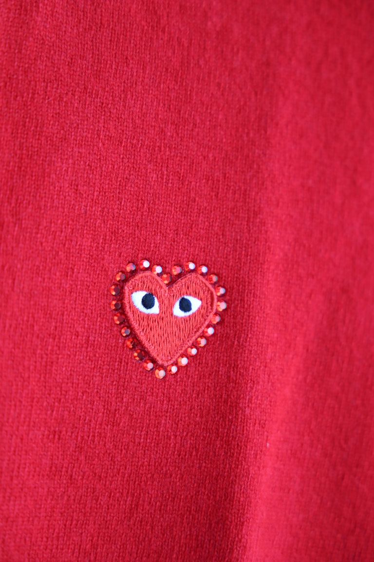プレイコムデギャルソン ROUND NECK RHINESTONE CARDIGAN (RED/RED HEART)