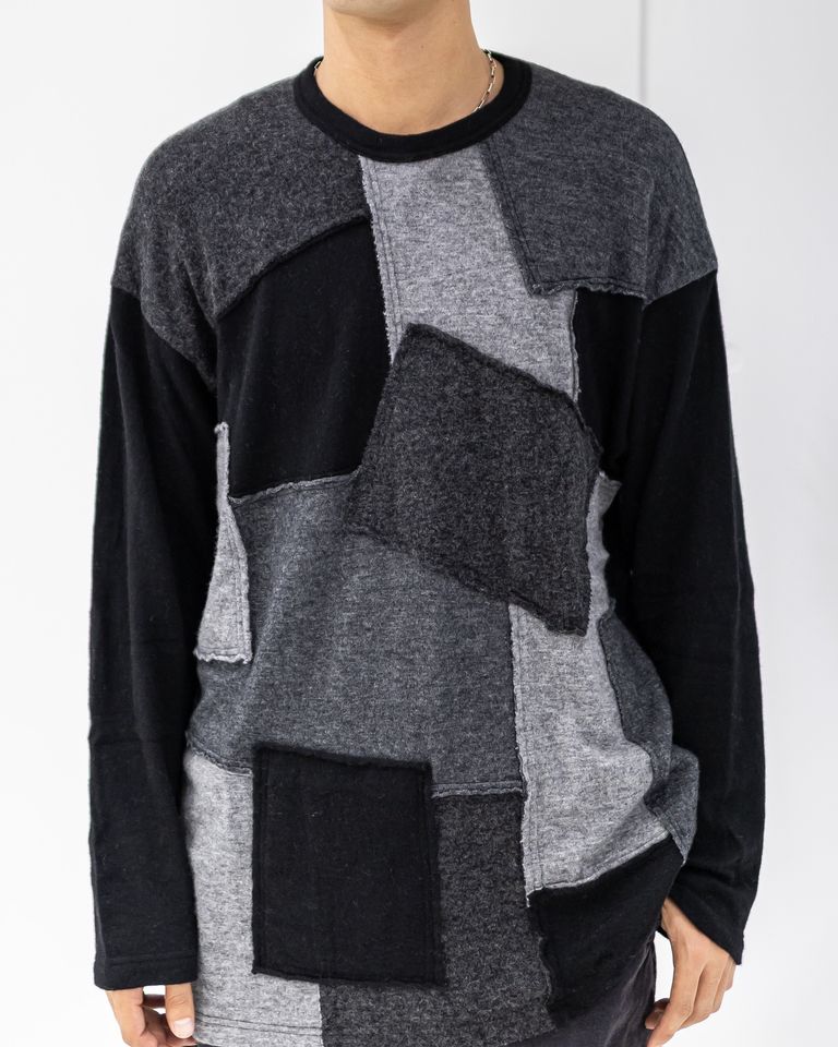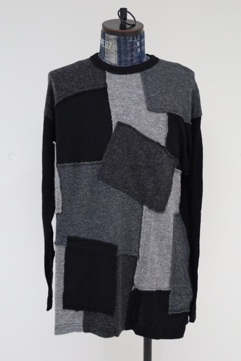 コムデギャルソンオム25FW ウールナイロン天竺パッチワークニット(HP-T018-051)BLACK★10月3日(金)発売!