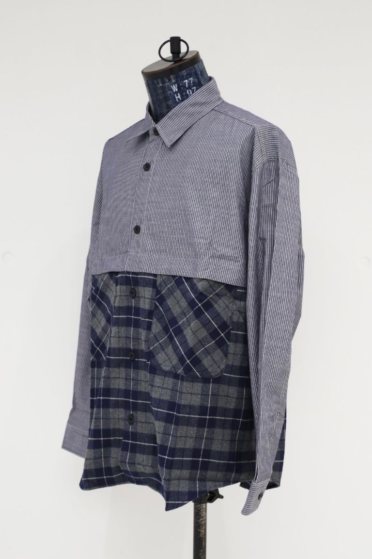 コムデギャルソンオム25FW 綿ストライプシャツ(HP-B018-051)NAVY/WHITE×GRAY/NAVY★10月3日(金)発売!