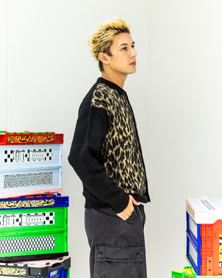 セントマイケル ニットカーディガン LEOPARD KNIT CARDIGAN(SM-HR1-0000-073)BLACK