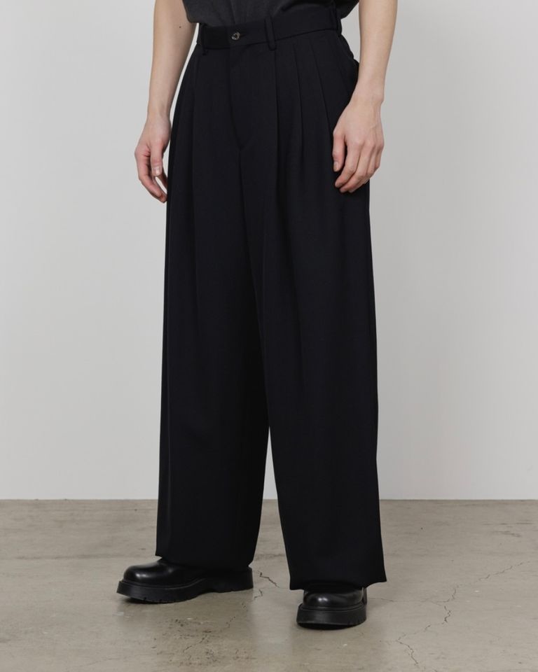 MARKAWARE Organic Wool Survival Cloth® Triple Pleated Wide Trousers(A25C06PT02C)BLACK☆新作発売!