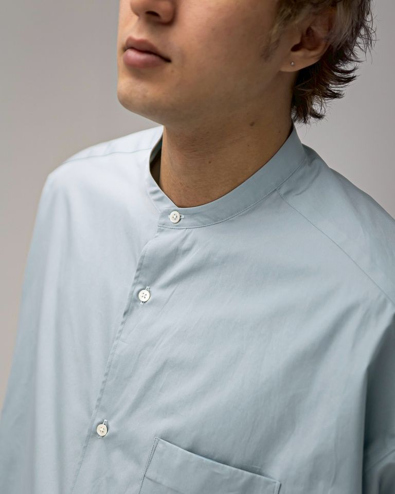 グラフペーパー 26SS ALUMO for GP L/S Oversized Band Collar Shirt(GM261-50223) SMOKE BLUE