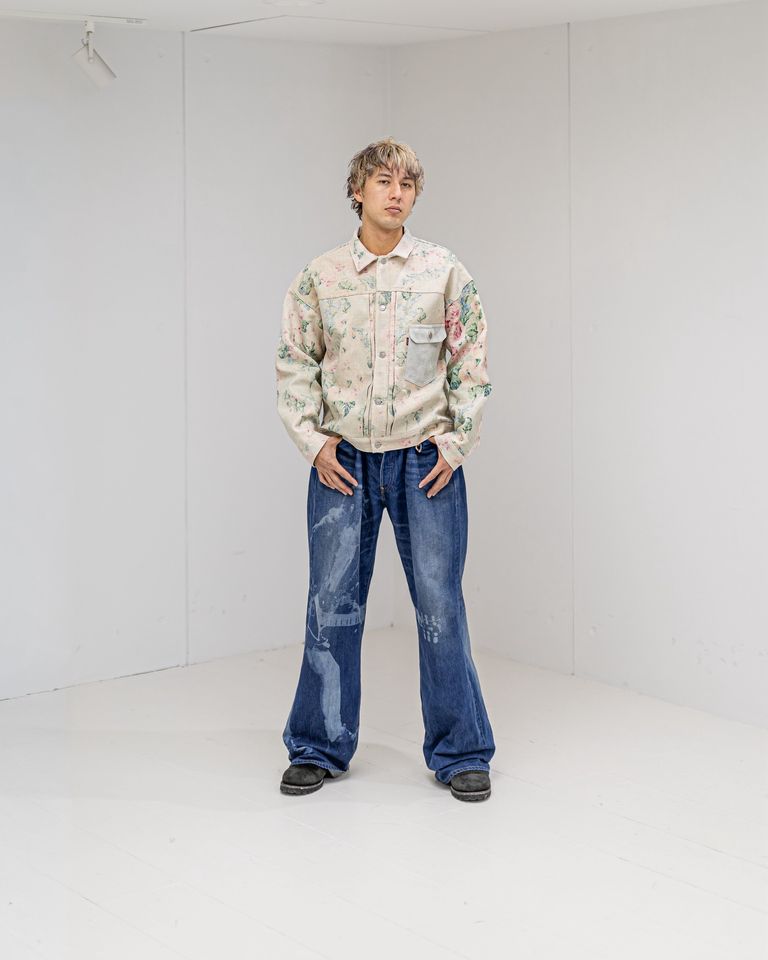 ジュンヤワタナベマン 26SS Levi'sWネーム レーヨンリネン花柄プリント×牛革ジャケット(WQ-J204-051)