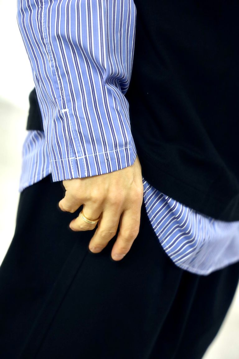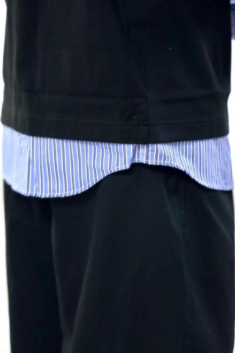 コムデギャルソンオム26SS 綿度詰天竺×綿ポプリンストライプTシャツ(HQ-T006-051)BLACK