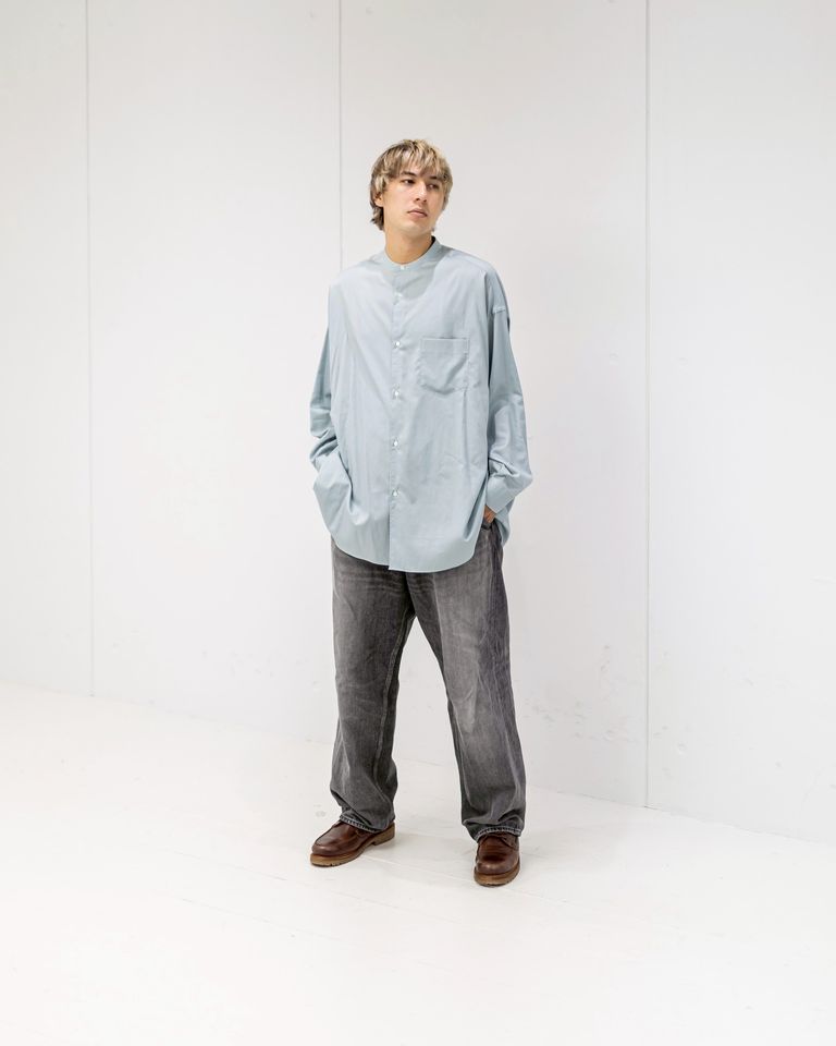 グラフペーパー26SS Silicon Poplin Oversized Band Collar Shirt(GM261-50181)SMOKE BLUE☆2月28日(土)発売!