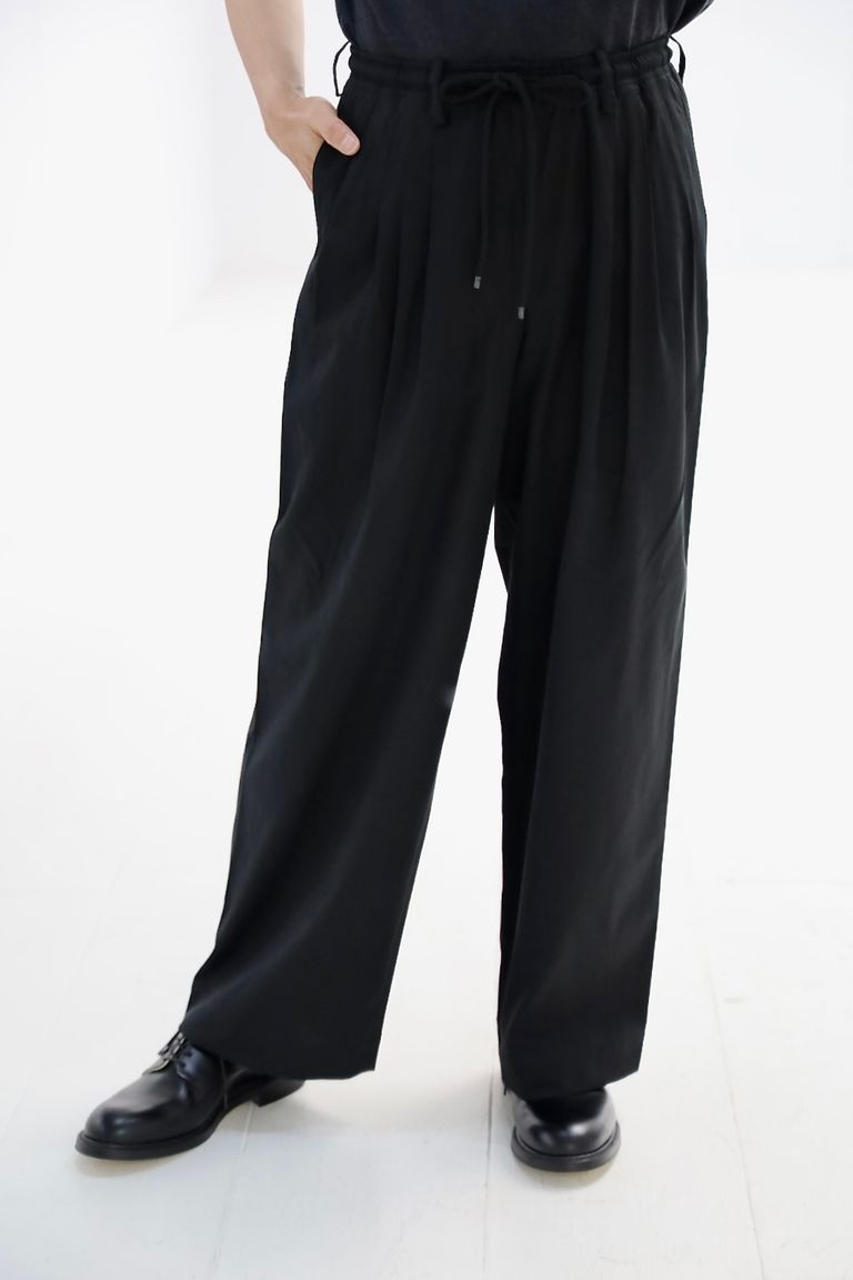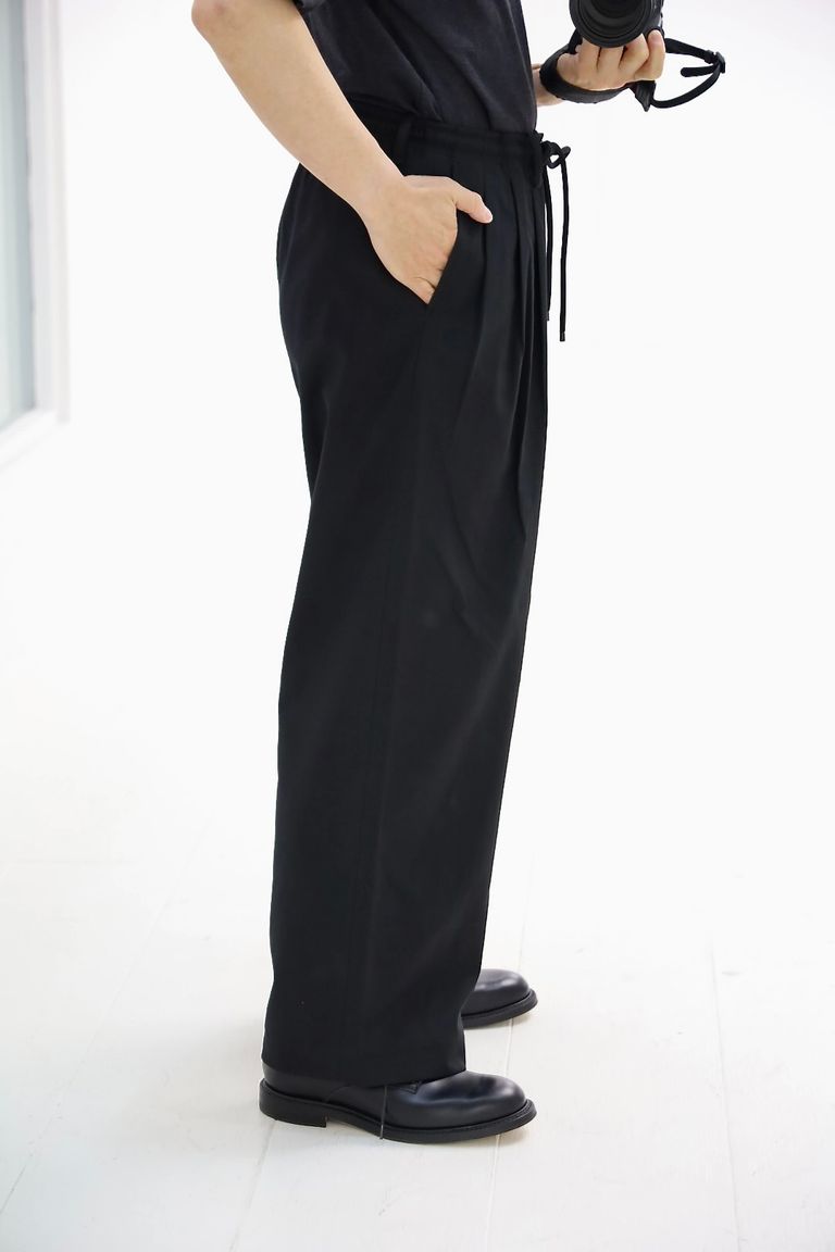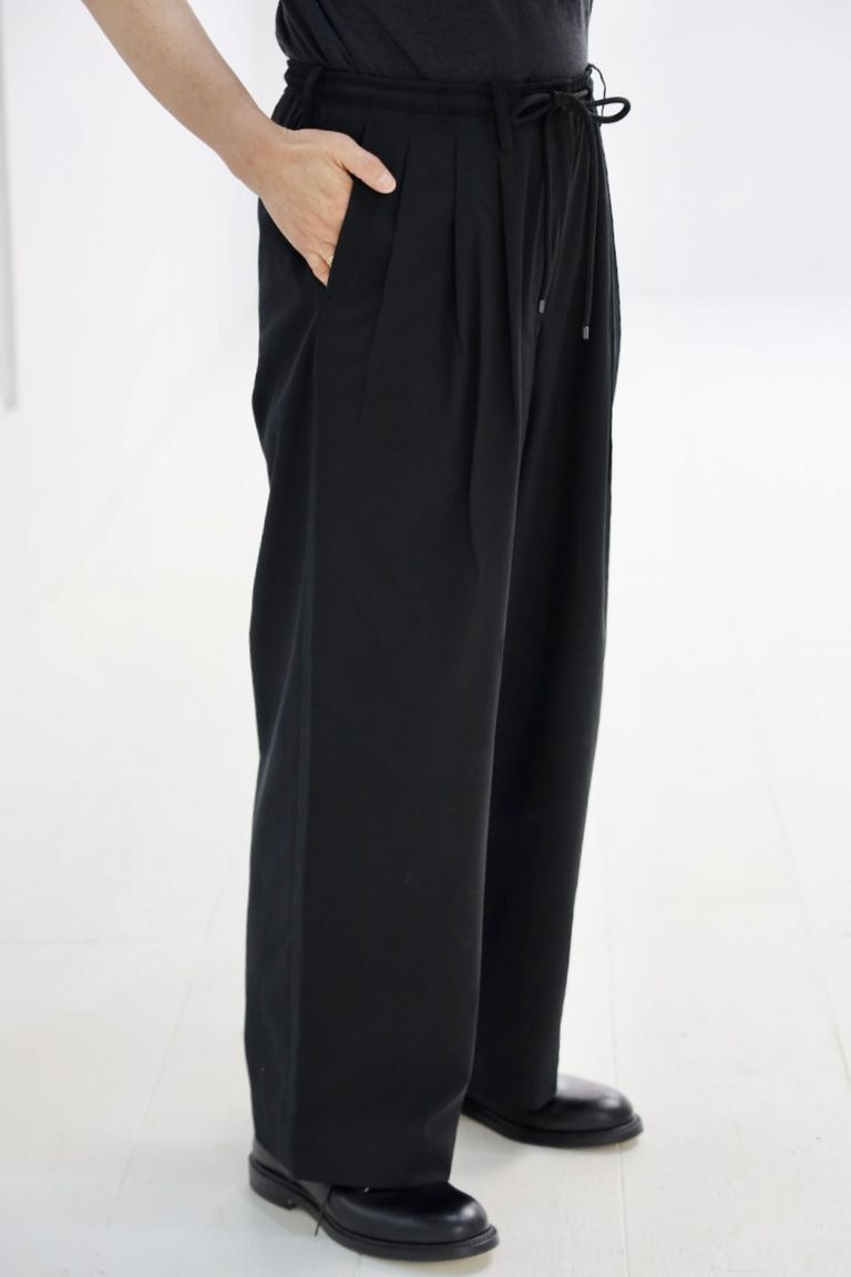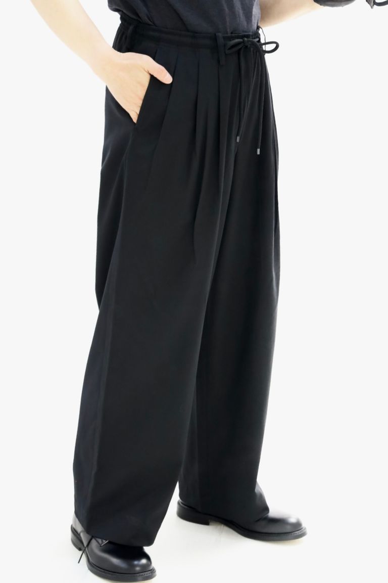 マーカウェア 26SS 60/2オーガニック強燃ボイル3/2ツイル / トリプルプリーテッドイージートラウザーズ(A26A16PT02C) Black☆新作発売!
