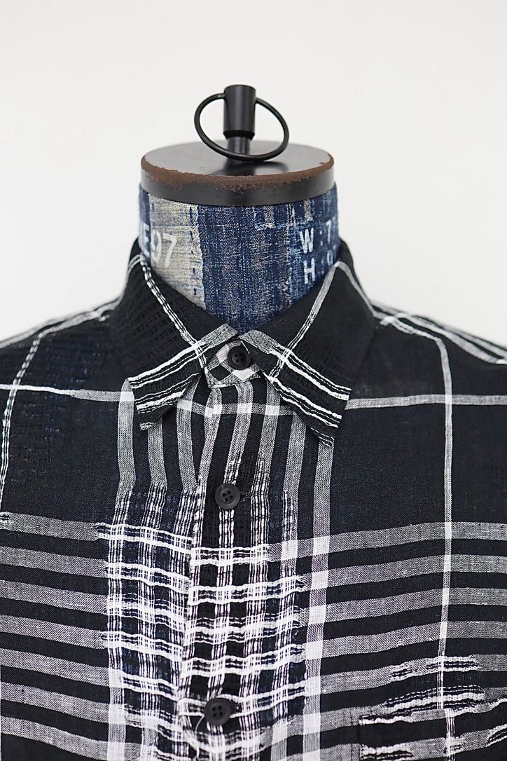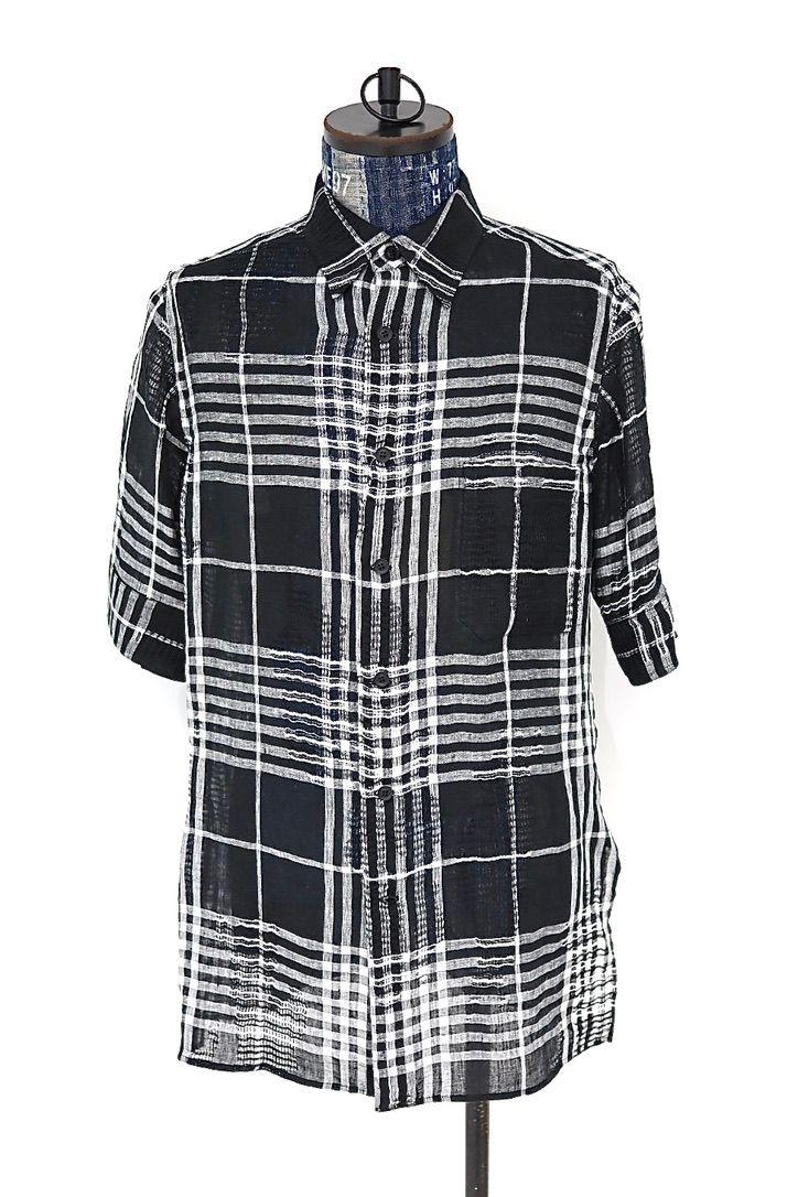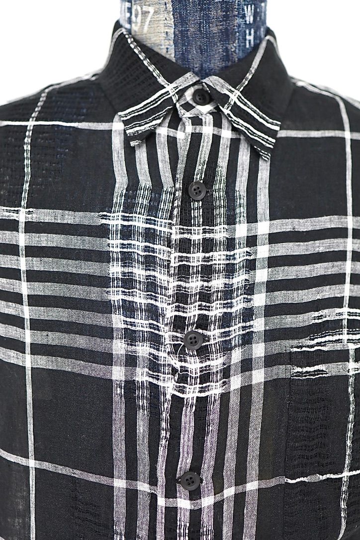 Yohji Yamamoto チェック柄レギュラーカラーシャツ (HK-B71-313)WHITE x BLACK☆新作発売!